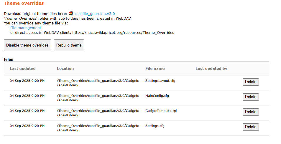 In order to complete setup, you will need to rebuild your WildApricot theme after the gadget has been installed. To do this, simply navigate to the Theme Overrides tab in the Website section of the WildApricot dashboard. From here click "Rebuild Theme". That's it!